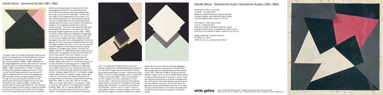 Geometrické kompozice byly vystaveny na všech Sýkorových retrospektivách jako důležitá součást jeho díla – jako pokračování cyklu Zahrad a zároveň jako východisko pro struktury.