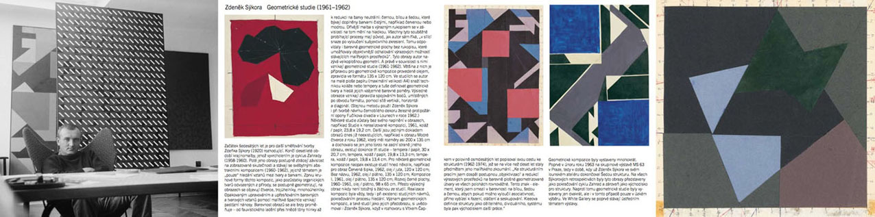 Začátek šedesátých let je pro další směřování tvorby Zdeňka Sýkory (1920) rozhodující. Končí desetileté období krajinomalby, jehož vyvrcholením je cyklus Zahrady (1958-1960). Poté jeho obrazy postupně ztrácejí závislost na zobrazované skutečnosti a stávají se svébytnými abstraktními kompozicemi (1960-1962), jejichž tématem je „pouze“ hledání vztahů mezi tvary a barvami. Zprvu kruhové formy těchto kompozic, jako pozůstatky organických tvarů odvozených z přírody, se postupně geometrizují, na obrazech se objevují čtverce, trojúhelníky, mnohoúhelníky. Opakovaným upravováním a upřesňováním barevných a tvarových vztahů pomocí malířské špachtle vznikají pastózní nánosy. Barevnost obrazů se ale brzy proměňuje – od fauvistického ladění přes hnědé tóny hlinky až k redukci na barvy neutrální: černou, bílou a šedou, doplněné čistými barvami. Malba s výrazným rukopisem se v závislosti na tom mění na hladkou. Všechny tyto souběžně probíhající procesy mají původ, jak autor sám říká, „v sílící snaze po vyloučení subjektivního zkreslení. Tomu odpovídaly i barevné geometrické plochy bez rukopisu, které umožňovaly objektivnější odhalování výrazových možností stávajících malířských prostředků“. Tyto obrazy autor nazývá velkoplošnou geometrií.