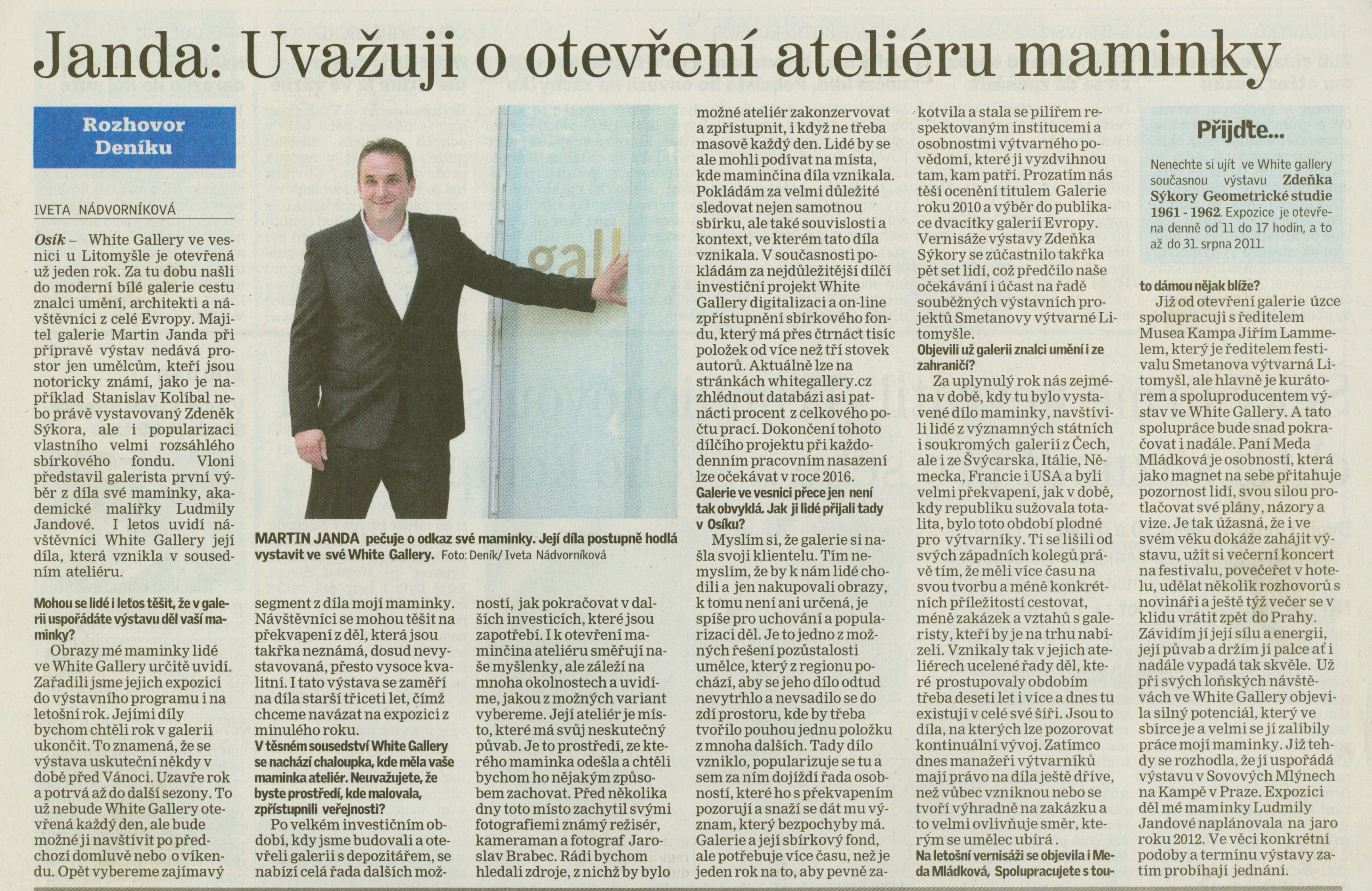 "Bílá" galerie v Osíku ve druhé sezoně vystavuje Sýkoru, SVITAVSKÝ DENÍK 11. 7. 2011