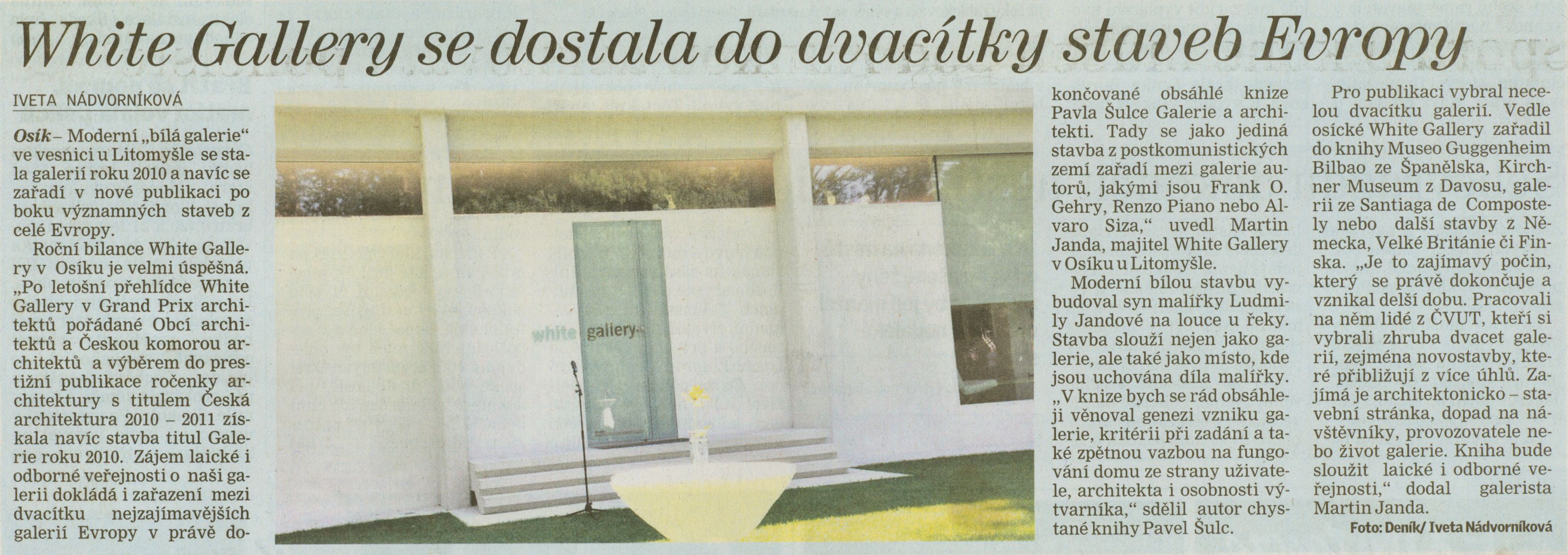 White Gallery se dostala do dvacítky staveb Evropy, SVITAVSKÝ DENÍK 22. 7. 2011