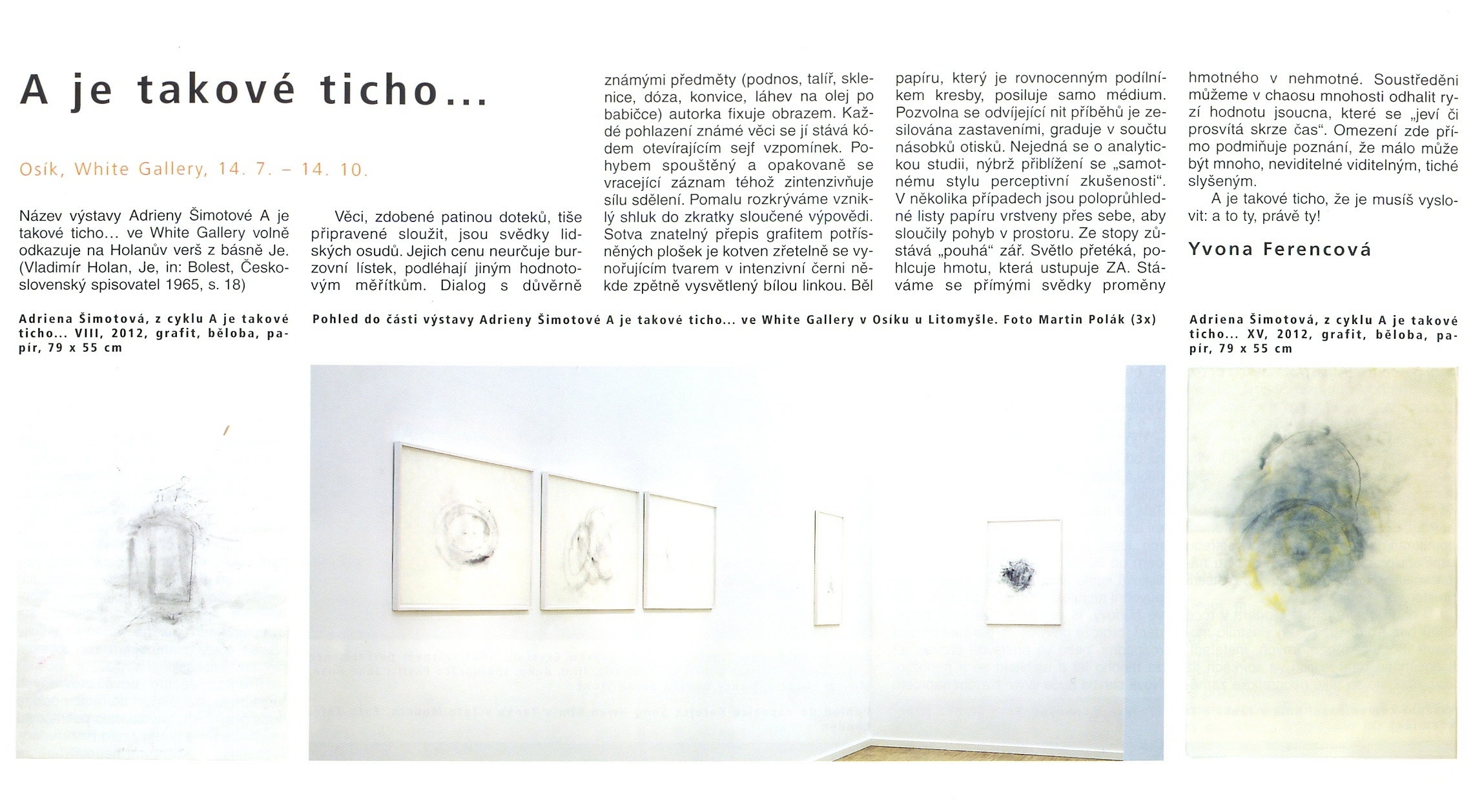 Adriena Šimotová: A je takové ticho, Smetanova výtvarná Litomyšl, červenec 2012