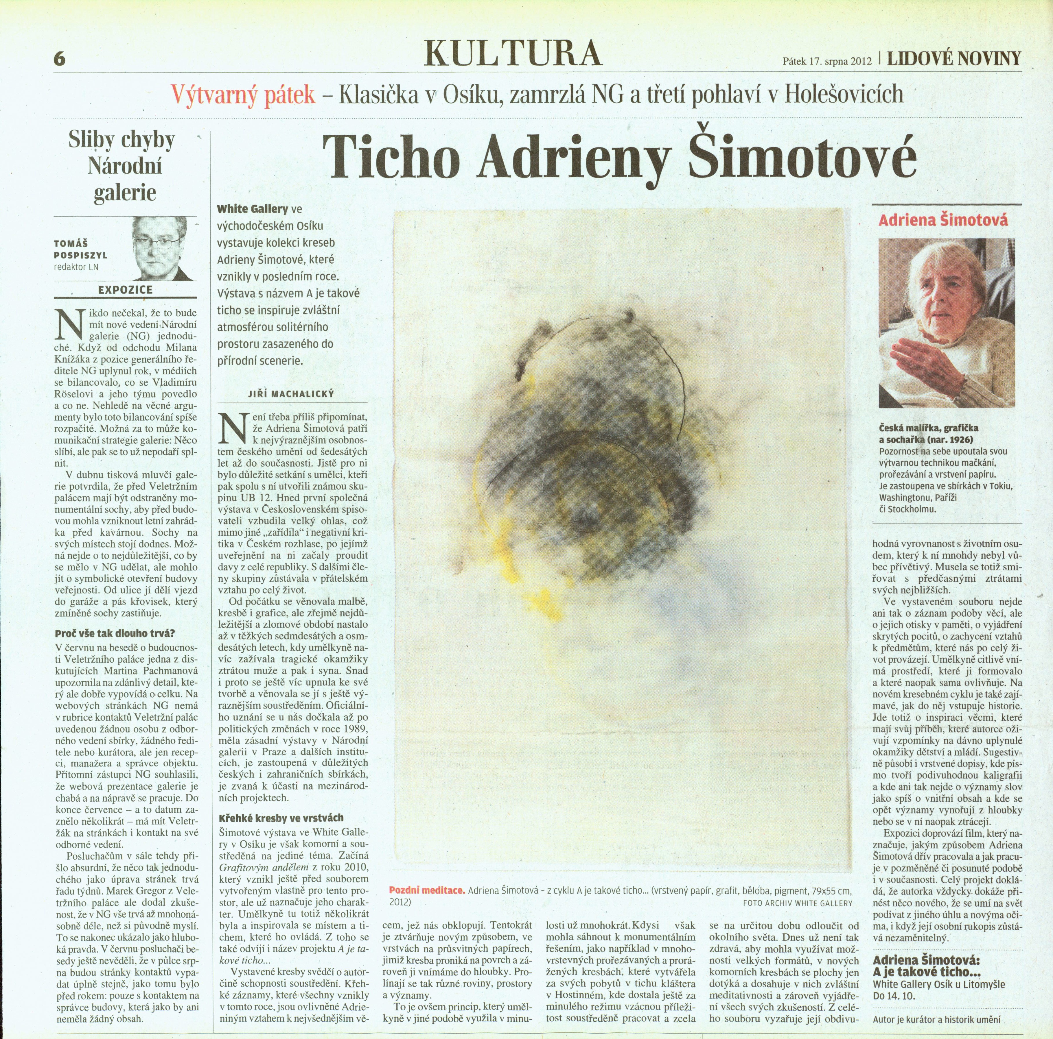Ticho Adrieny Šimotové, LIDOVÉ NOVINY, 17. 8. 2012